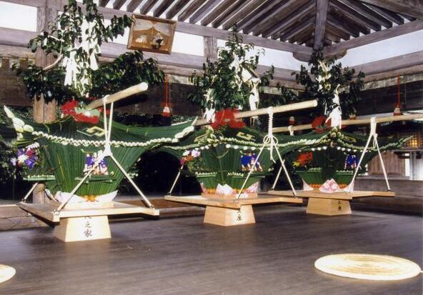 国の重要無形民俗文化財にも指定されたこの祭りは、御上神社周辺の5つの里から神輿が集まる様子が見どころ。