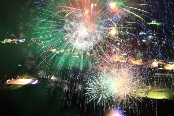 時代行列が神火を携え、和ろうそくの迎え火の中を進み、大斎原神事では炎の神輿を囲んで神事が行われます。奥熊野太鼓の演奏と花火が、火祭りのフィナーレを飾ります。