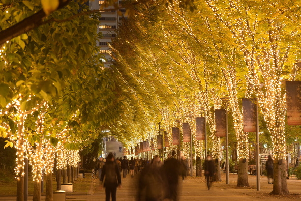 6回目となる今回は、かたらいのイチョウ並木や日本庭園に加え、立川ゲートから入ってすぐのカナールイチョウ並木もライトアップ会場に仲間入りします。