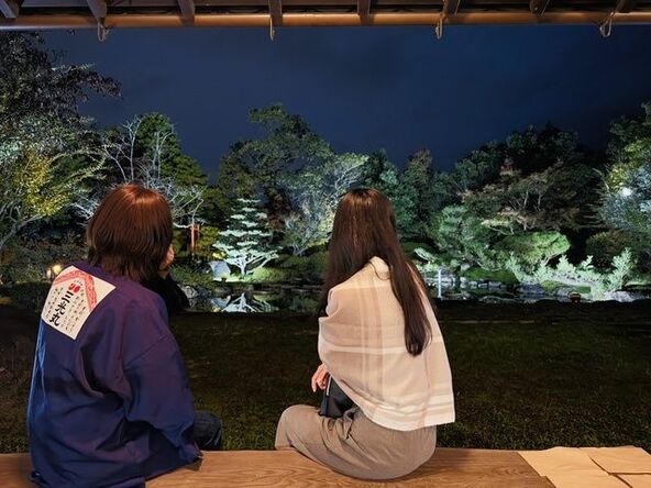 歴史ある建物でライトアップされた庭園の美しさを、親子でお楽しみください。