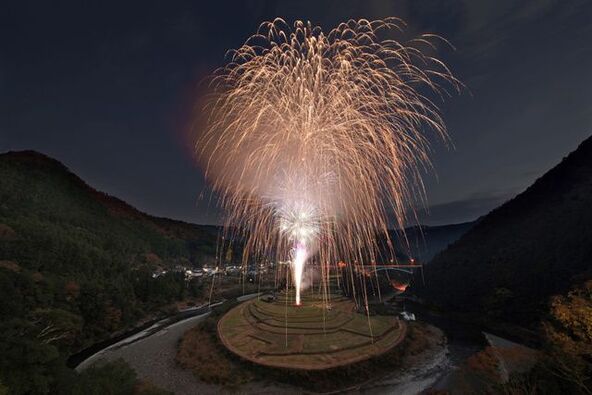 あらぎ島と吉備・金屋地域の有田川沿いの6カ所で同時に花火が打ち上げられ、楽しむことができます。