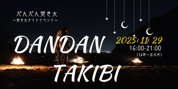 2025年11月29日(土)の16時から21時まで、「羽根谷だんだん公園キャンプ場」では、「だんだん焚き火~焚き火ナイトイベント~」が開催されます。