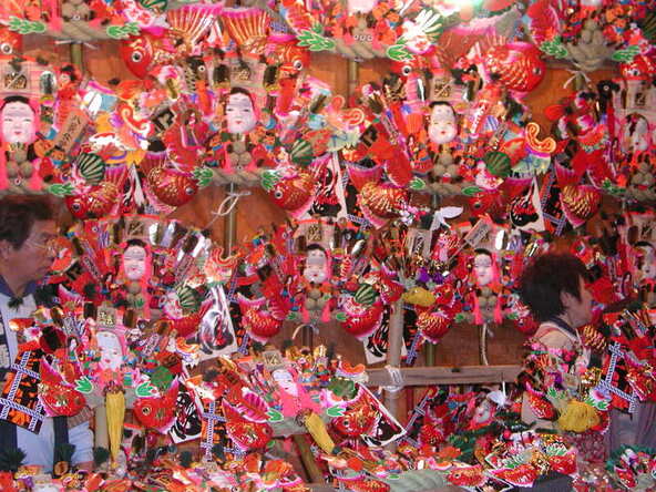 現在では、「浅草寺」の羽子板、「西新井大師」の熊手、「飯泉山 勝福寺(飯泉観音)」のだるまなど、開運を願う縁起物が主役となっている市も多く、見て回るだけでも楽しいですよ。