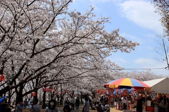 約1,000本の桜が一斉に咲く桜の名所でもあり、例年3月下旬〜4月上旬に見頃をむかえます。シーズン中の夜には、約300個のぼんぼりが点灯され、夜桜の見物客で賑わいます。