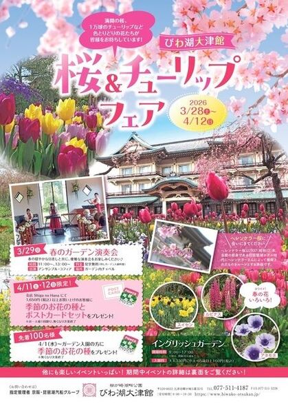 2026年3月28日(土)から、滋賀県大津市の「びわ湖大津館 イングリッシュガーデン」では、「びわ湖大津館 桜&チューリップフェア」が開催されます。