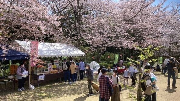 園内では「平草原桜マルシェ」が開催され、多肉植物店やキッチンカーが出店予定です。また、「お花見文字さがし」、夜桜ライトアップも実施されます。