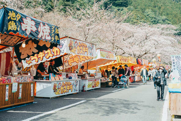 満開の桜のもと、グルメやステージ、餅投げなど盛りだくさんのイベントで、春の一日を家族で楽しんでみてはいかがでしょうか。
