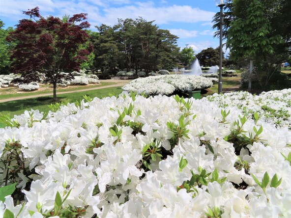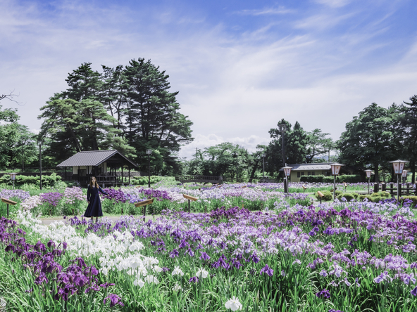 春から夏にかけては、樹齢約1,200年の“さくら”や、約3,000株が白く咲き誇る“白つつじ”、市のシンボルでもある“あやめ”など、色とりどりの花々がまちを彩ります。