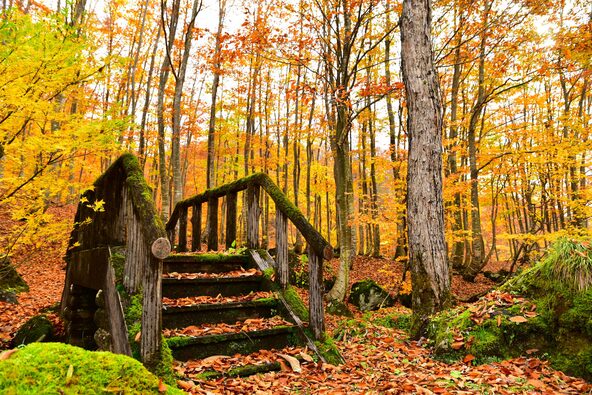 風を感じたり鳥のさえずりに耳を澄ませたりと、五感で自然を味わえるスポット。紅葉ピーク時はもちろんですが、葉っぱが落ち始める頃に行くと、足元も頭の上も赤や黄色で、360度紅葉に包まれる感動的な景色が見られますよ。