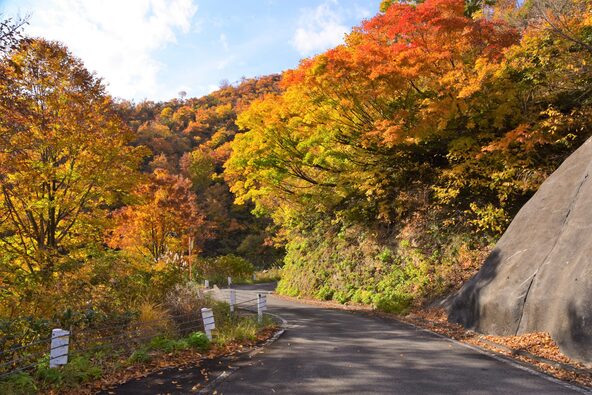 つづら折りの峠道で紅葉ドライブ「枝折峠(しおりとうげ)」