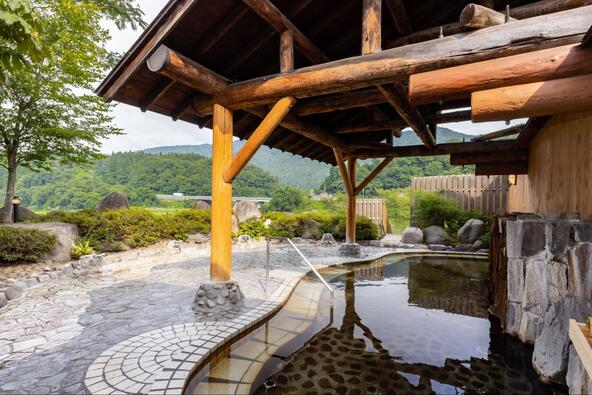 春から初夏の時期には、新緑に包まれた山々の爽やかな景色の中で湯につかることができます。アルカリ性単純温泉で、肌あたりのやわらかさが特徴です。