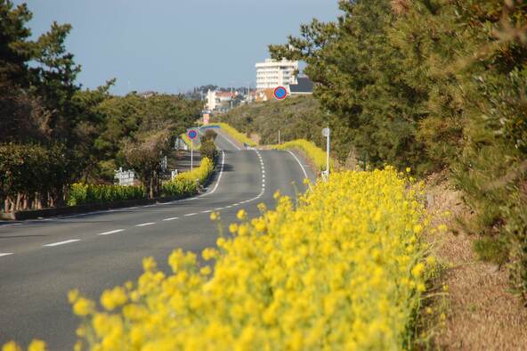 千葉県館山市から南房総市の約46kmに渡る「房総フラワーライン」では、1月下旬から2月下旬にかけて菜の花が見頃を迎えます。