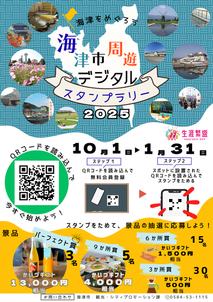 岐阜県海津市では、2026年1月31日(土)まで「海津市 周遊デジタルスタンプラリー2025」を開催中です。