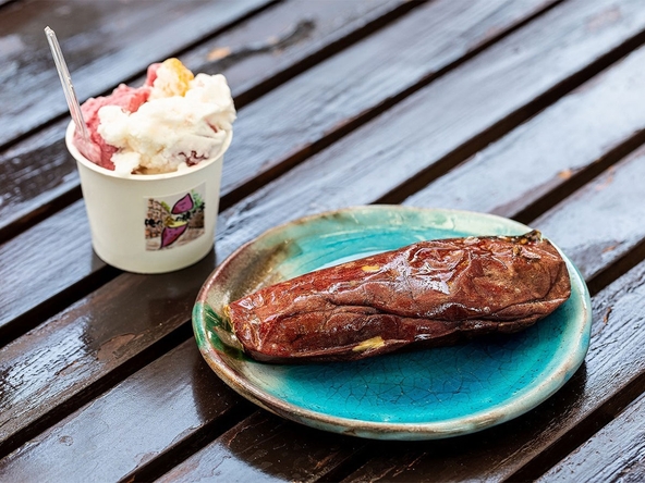 常滑焼の土管を再利用した足湯につかりながら、常滑土管で焼いたねっとりと甘い焼き芋とジェラートのセットを楽しめます。足湯でリラックスしながら美味しいスイーツを味わう体験は、ここでしか味わえない特別な思い出になるでしょう。日々の疲れを忘れて、親子でのんびりとした時間を過ごせます。
