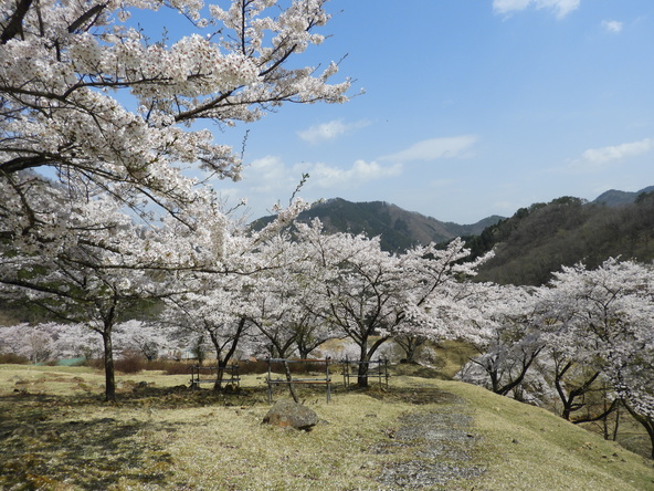 山間の桑畑跡に地元の人たちが大切に育ててきたソメイヨシノの名所があります。