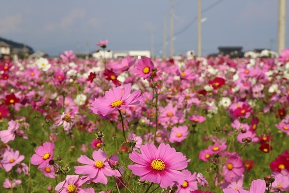 東かがわ市では西村地区の西村コスモスロードや白鳥地区、大谷地区などで美しい景色を毎年見ることができます。