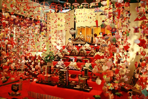 館内のジャンボつるし飾り(6,409個)とジャンボ雛段(17段)は圧巻のひとこと。端午のつるし飾りや、福岡県柳川のさげもん、山形県酒田の傘福など、日本三大つるし飾りも一堂に鑑賞できます。