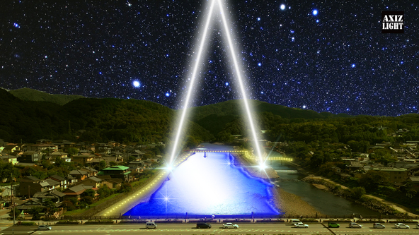 雲まで届く光が宇治の天空で交わる壮大な光の演出をご覧いただきます。