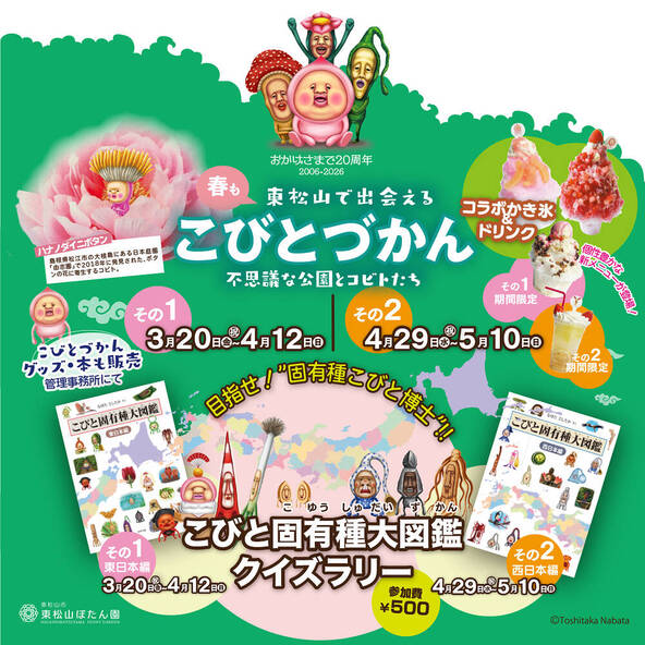 東松山ぼたん園で、今年の春もイベントを開催いたします。今回は『こびと固有種大図鑑 東日本編』『こびと固有種大図鑑 西日本編』の2冊から、日本各地に生息する固有種コビトに関するクイズに答えてまわるクイズラリーです! 目指せ、”固有種こびと博士”!!