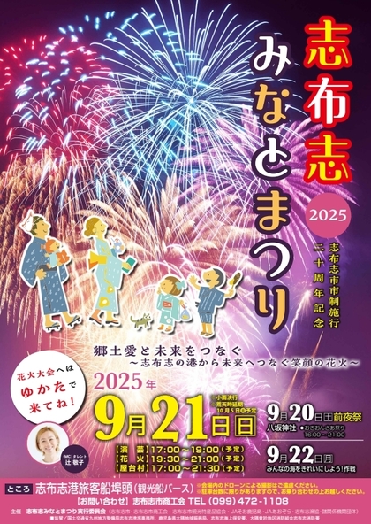 今年は、志布志市の市制施行二十周年を記念して開催される特別なお祭りです。従来は7月に開催されていましたが、熱中症対策のため9月に変更されました。