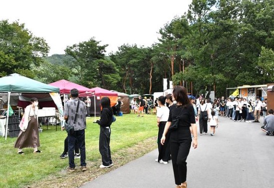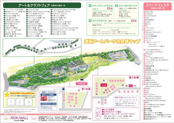 緑に囲まれた須坂アートパークに、県内外の人気スイーツ店やキッチンカー、地元農園のフルーツなど約50店舗が大集結し、甘くて美味しい2日間を楽しめます。