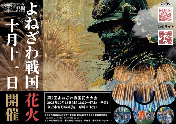 山形県米沢市で、2025年10月11日(土)に「第2回よねざわ戦国花火大会」が開催されます。