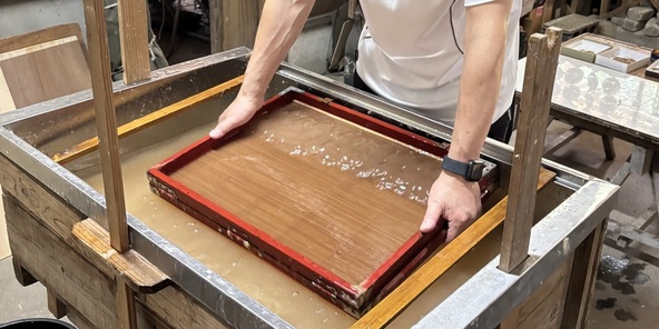 「職人の指導で自分で手漉き!伝統の横野和紙」では、津山市横野地区に伝わる伝統工芸「横野和紙」の技を体験できます。職人と同じ道具を使った本格的な紙漉きで、地元産の三椏と清らかな滝の水を使用します。