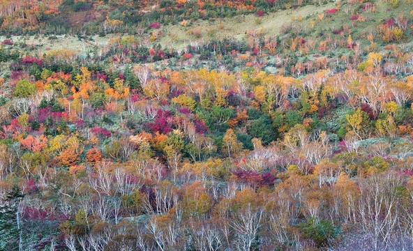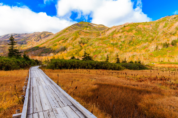 例年9月中旬から草紅葉が始まり、10月上旬から中旬にかけてナナカマドやカエデが真っ赤に色づき、黄色に変わるダケカンバとのコントラストが山全体に広がります。