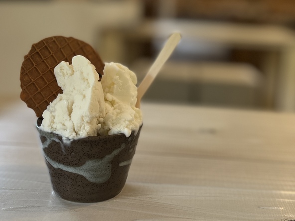 紅葉狩りの合間には、地元産の食材にこだわったオタリアンジェラートがおすすめです。定番の蕎麦の実を使った「蕎麦ジェラート」や、地元の清酒の酒粕を練り込んだ「酒粕ジェラート」、小谷村や長野県産の旬のフルーツや野菜を取り入れたジェラートが楽しめます。