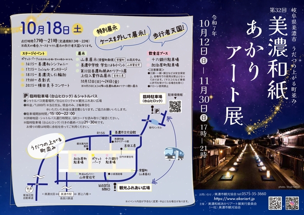 岐阜県美濃市の「うだつの上がる町並み」で、2025年10月12日(日)から11月30日(日)まで「美濃和紙あかりアート展」が開催されます。