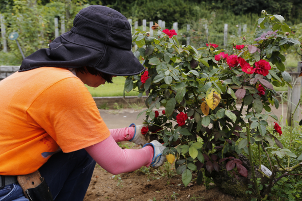 2002年の向ヶ丘遊園の閉園に際し、ばら苑の存続を求める地域住民の声に応え、川崎市が維持管理を継承。現在は約150人のボランティアが協力し、丹精込めてバラを育てています。