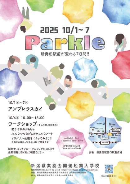 新潟県新発田市のJR新発田駅前で、2025年10月4日(土)に学生が企画・運営するまちづくりイベント「Parkle(パークル)」が開催されます。
