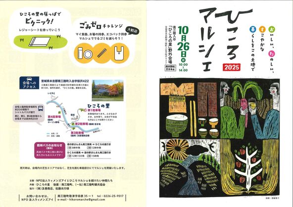 宮城県南三陸町の「ひころの里」野外会場で、2025年10月26日(日)に、「ひころマルシェ2025」が開催されます。
