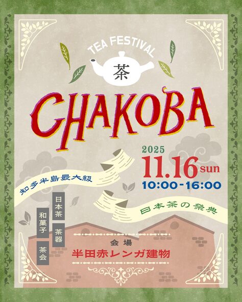 愛知県半田市の「半田赤レンガ建物」で、2025年11月16日(日)に「tea festival CHAKOBA 2025」が開催されます。