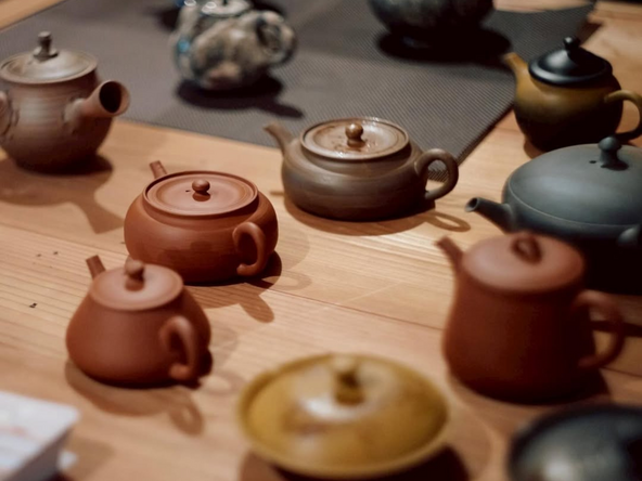 伝統技法でつくられた作品から、モダンなデザインの作品まで、さまざまな茶器に出会えます。