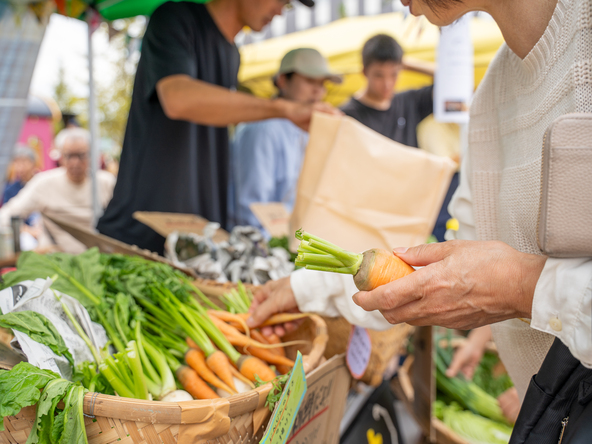 生産者に直接、野菜へのこだわりや美味しい食べ方を聞くことができるのも魅力の一つです。新規就農者を育成する「かめおかオーガニック農業スクール」の取り組みも紹介されます。
