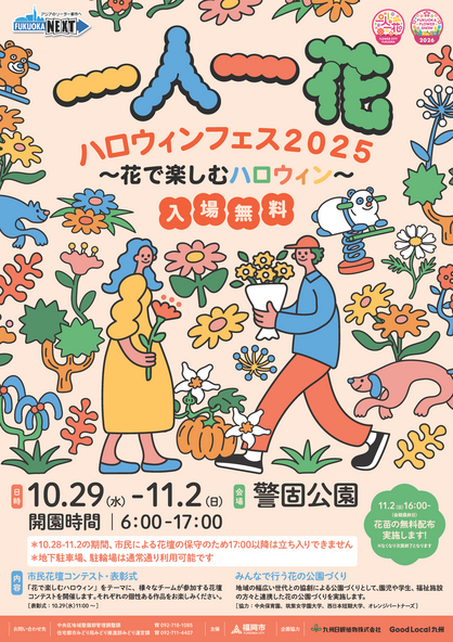 福岡県福岡市中央区の警固公園で、2025年10月29日(水)〜11月2日(日)まで、「一人一花ハロウィンフェス2025 ~花で楽しむハロウィン~」が開催されます。