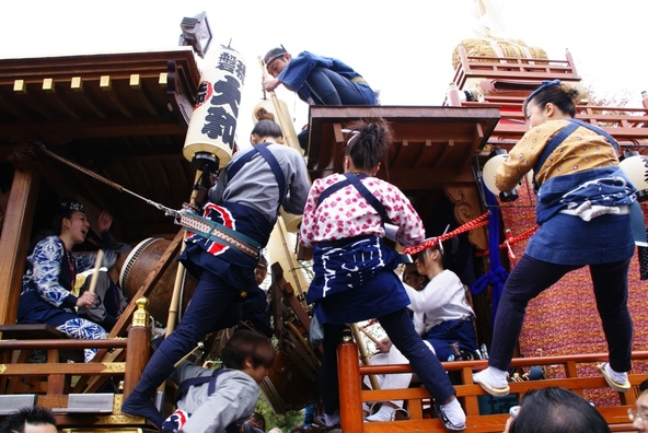 | 開催時間 | 11月3日 9:00~10:00 宮まいり、各区にて山車・屋台の引き廻し・競り合い 17:00~21:00 宵宮 11月4日 8:00~15:00 各区山車・屋台の引き廻し・競り合い 16:00~21:00 本宮 11月5日 各区にて山車・屋台の引き廻し・競り合い・踊り |