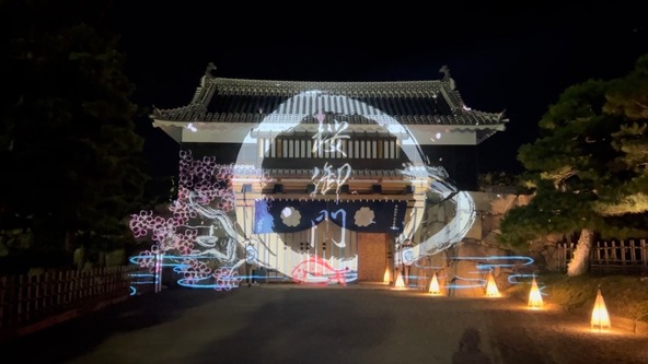 桜御門では、穴吹デザインカレッジの学生によるプロジェクションマッピングを上映。また、披雲閣では、史跡高松城跡玉藻公園開園70周年と公益財団法人松平公益会設立100周年を記念したパネル展が開催されます。