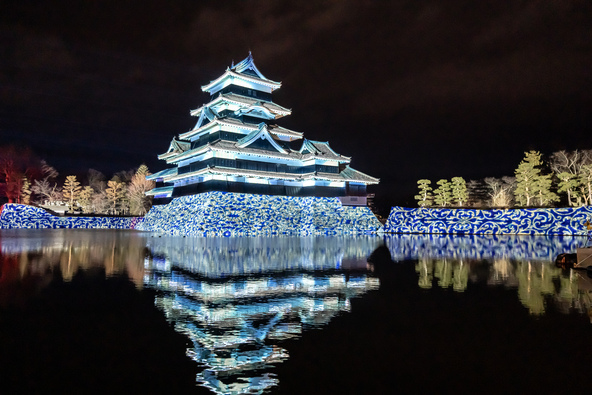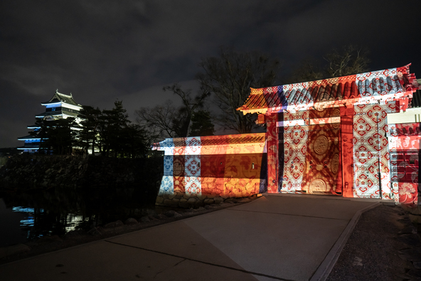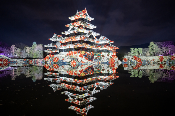 国宝松本城の天守や石垣に、松本市立博物館所蔵の商都松本が描かれた錦絵、絢爛豪華な屏風絵、松本てまりや提灯など松本市ならではの伝統工芸のモチーフが投影されます。