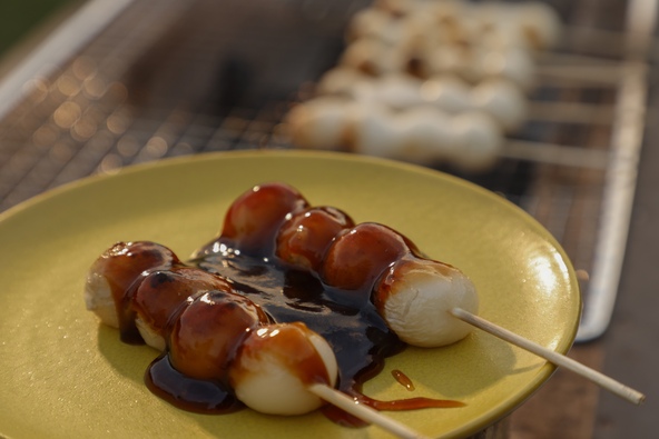 焼きたての団子にみたらしソースをかけた、寒い冬の日にぴったりなほっとする味わいが楽しめます。