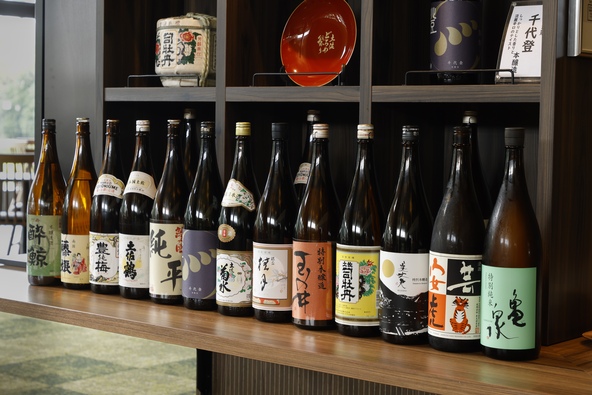 隣接するラウンジでは、ミレービスケットや芋けんぴなど地元ならではのおつまみや、県内12の酒蔵から厳選した日本酒を用意しています。