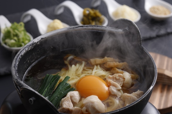 鶏がら醤油ベースのスープに高知が誇るブランド鶏「土佐ジロー」の卵を落とし、鉄鍋でテーブルのコンロで熱々に仕上げる臨場感も味わえます。