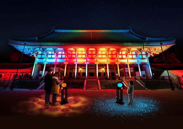 夜の神社を光と映像で彩る特別な夜間参拝イベントで、「祈り」をテーマにした新しい形の文化体験として、訪れる人々がそれぞれのかたちで夜の神社の時間を過ごせる場となっています。