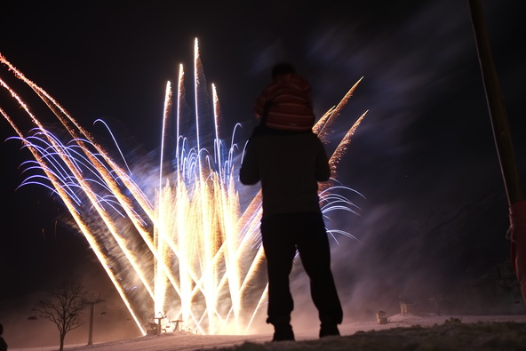 新年を迎えられることへの感謝を込めて、ハチ高原スキー場の夜空に大きな花火が打ち上げられます。