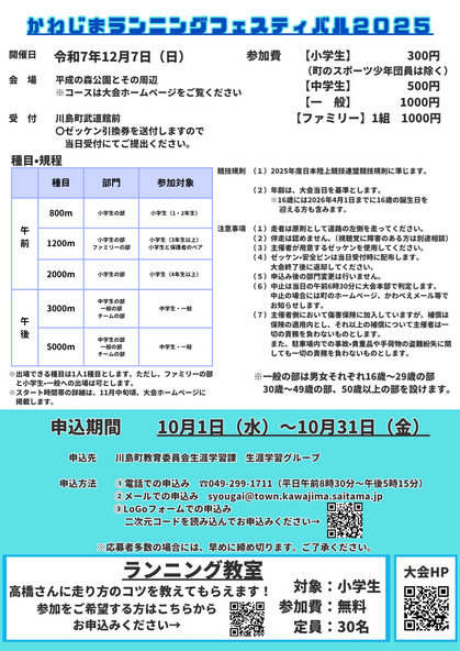| イベント名 | かわじまランニングフェスティバル2025 |
