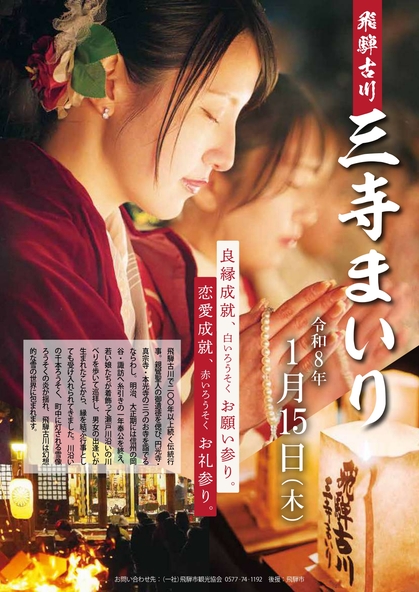 岐阜県飛騨市古川町の中心市街地で、1月15日(木)に、200年以上続く冬の伝統行事「三寺まいり」が開催されます。