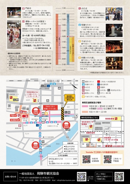 | 電話番号 | 0577-73-7463 飛騨市役所まちづくり観光課(8:30~17:15、土・日・祝日、年末年始休) |