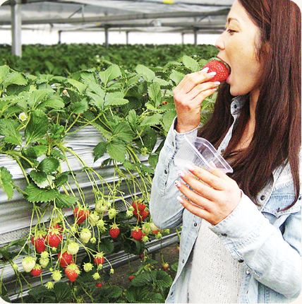 清潔な環境で育ったいちごを、立ったままじっくり選べるのがうれしいポイント!