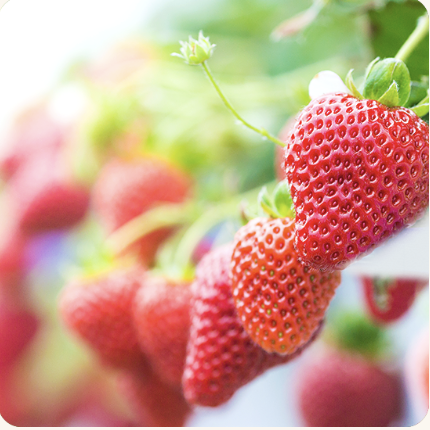 あきひめは実がやわらかくとっても甘く、よつぼしはほどよい酸味と十分な甘さでいちご本来の甘酸っぱさが楽しめます。紅ほっぺはとっても甘くて実がしっかりしており、かおり野はかおりが強くて甘いのが特徴です。